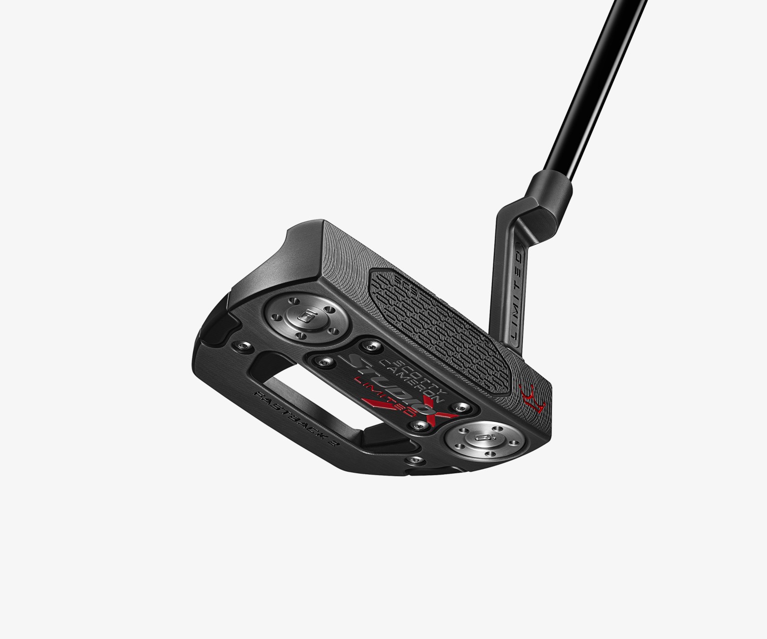 Classic translucent red cherry dots and a retro-modern engraved 3 Point Crown offer elegant pops of color, while parallel milled sight lines in jet black on the topline provide target-focused alignment cues. This tour proven precision milled 303 stainless steel model’s custom-engraved, integrated 6061 aluminium sole component’s draft angle ensures a perfectly square setup at address, while the counterbalanced graphite shaft has optimal flex for stability and confidence. Soft feel, tour-inspired design, a dark colour palette and the familiar performance of a plumbing neck make the Studio Xperimental Limited Fastback 2 one to game. Also available in a left-handed option.